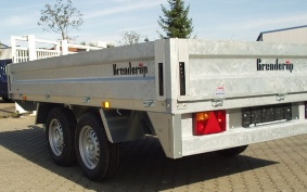 Brenderup 3251 T: besonders preisgünstige Tandem-Hochlader, in 2 Varianten lieferbar, gute Fahreigenschaften mit 4 Rädern, Ladefläche LxBxH ca. 2,50 x 1,42 x 0,34 m, Gesamtgewicht 750 kg ungebremst oder 1000 kg mit Bremse, mit V-Deichsel, 6 Zurrösen an Bordwänden, alle 4 Seiten klappbar und abnehmbar, mit festen Eckpfosten, neu: Bereifung 13 Zoll, 13 polig: