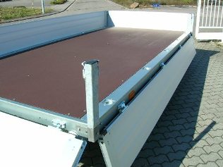Bei diesen Anhängern sind die Räder unter der Ladefläche, so dass alle Bordwände abgeklappt werden können, wodurch das Beladen von allen Seiten besonders einfach ist. Keine außenliegenden Kotflügel, dadurch große Ladebreite. Erhältlich als Einachser und mit Tandemachsen, einige Modelle auch in ungebremster Ausführung.